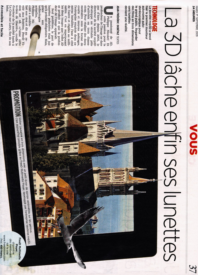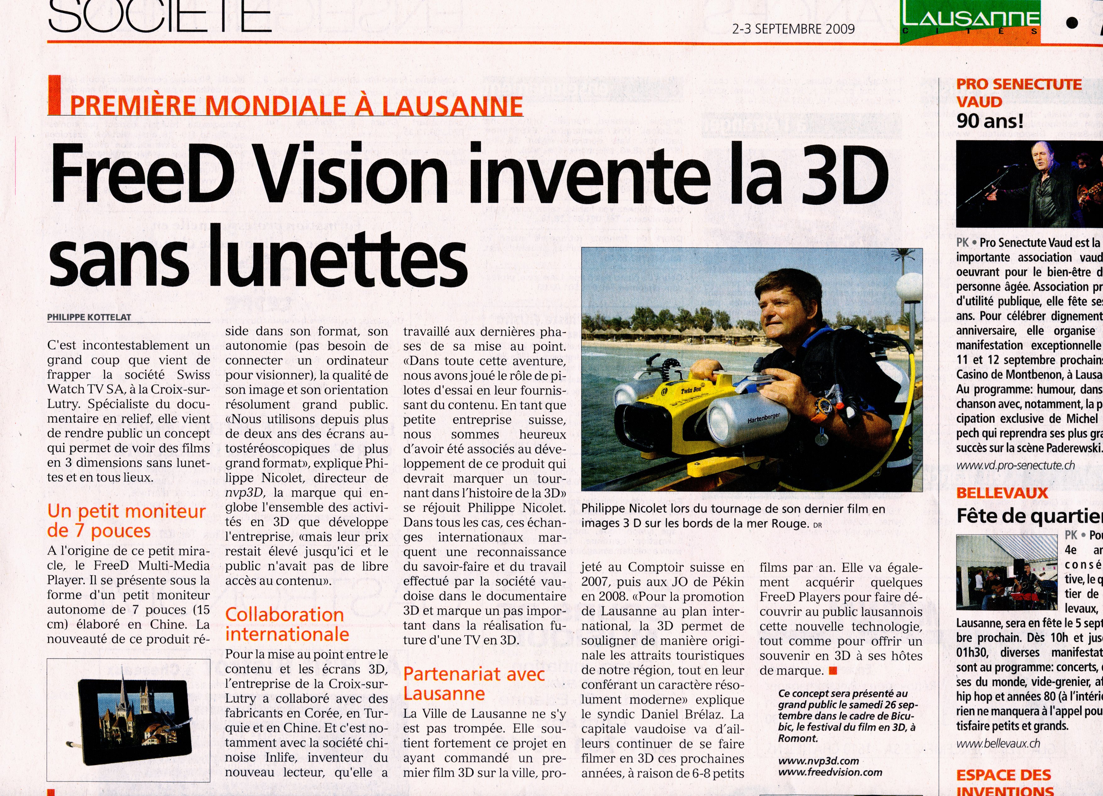 Conférence de presse FreeD à LausanneConférence de press NVP3D, en 2009, pour le nouveau FreeD, au Beau Rivage Palace à Lausanne, avec Daniel Brélaz, syndic de Lausanne et Philippe Nicolet, directeur de NVP3D.